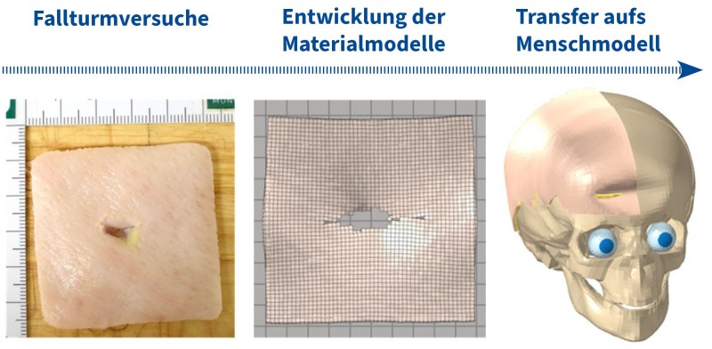 Projektschritte bei der Entwicklung eines Simulationsmodells für menschliche Haut (siehe "Aus der Arbeit des IFA 0465")